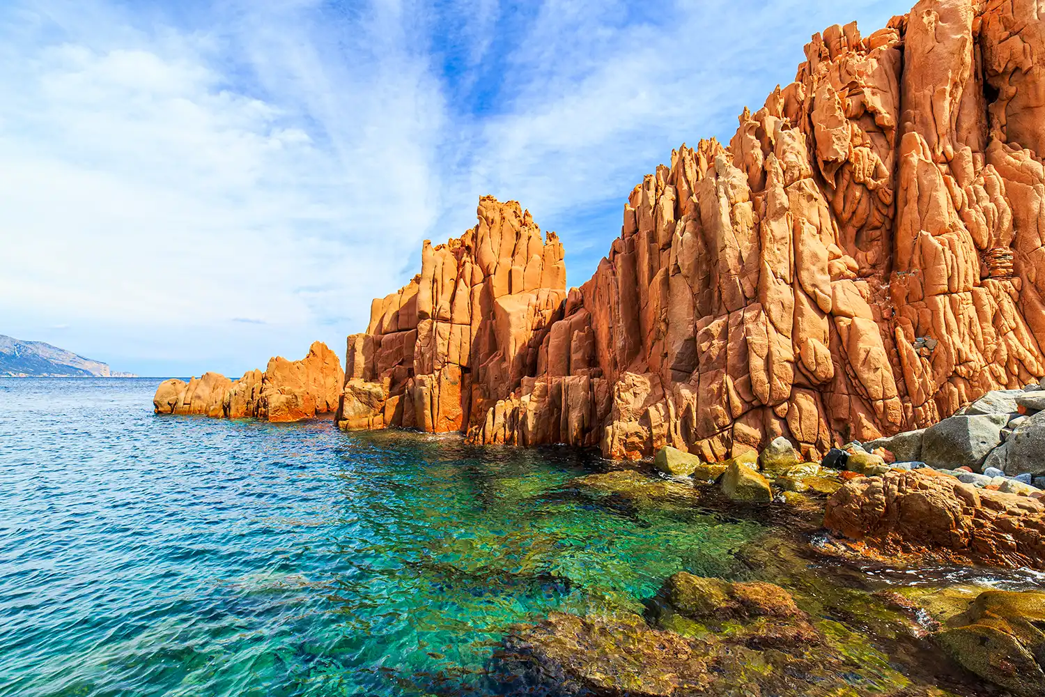 Am Vormittag besichtigen wir die sardische Hauptstadt Cagliari. Aussergewöhnlich macht diese Stadt die Bastione San Remy mit ihrem Ausblick über die neun Kalksteinhügel und das alte römische Amphitheater. Vorbei am Dom Santa Maria di Castello mit seiner opulenten Barockfassade und den kunstvollen Buntmarmorböden nähern wir uns dem bunten Wochenmarkt San Benedetto an. Nach der Mittagspause begeben wir uns auf eine einzigartige Panoramafahrt entlang der Königsküste «Costa Rei». Vorbei an weissen Sandstränden, traumhaften Buchten und dem smaragdgrünen Meer fahren wir in die Ogliastra, das gebirgige Hinterland Sardiniens mit seinen steilen Serpentinen und tiefen Tälern. Zum Abschluss des Tages erwarten uns die roten Porphyrfelsen von Arbatax. Die in der Abendsonne blutrot leuchtenden Felsen werden vom tiefblauen Mittelmeer wunderschön umspielt und bilden einen faszinierenden Kontrast zur ansonsten kargen Umgebung. Für die letzte Nacht beziehen wir unser Hotel bei Arbatax. Nachtessen im Hotel.